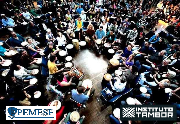 Workshop para capacitação de novos facilitadores de roda de tambores (FRT). Baseado no protocolo Community Drum Circles.